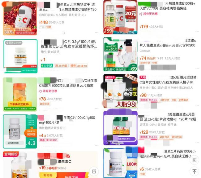 (不同維C產(chǎn)品價格相差巨大)